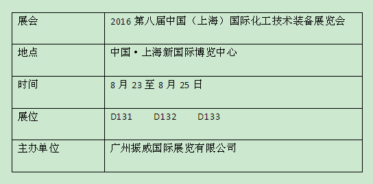 密友裝備制造愿與您相約2016中國(上海)國際化工技術(shù)裝備展覽會(huì),攜手共進(jìn)。預(yù)祝展會(huì)圓滿成功!
