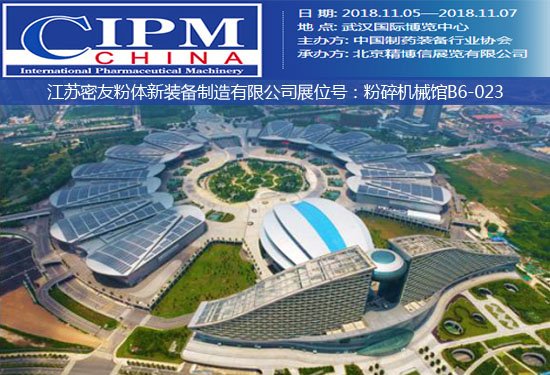 2018年第56屆全國制藥機(jī)械博覽會(huì)將于11月5日--7日在湖北武漢國際博覽中心召開,將吸引來自歐美日韓等21個(gè)國家和地區(qū)的1100余家展商參展,展覽面積達(dá)13萬平米。江蘇密友粉體新裝備制造有限公司將在粉碎機(jī)械館 B6-023展位亮展,期待您的蒞臨。