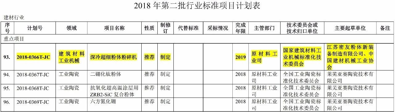 在工信部印發《2018年第二批行業標準制修訂和外文版項目計劃》里,由江蘇密友粉體新裝備制造有限公司、中國建材機械工業協會起草的《深冷超細粉體粉碎機》被列為建材行業重點項目。