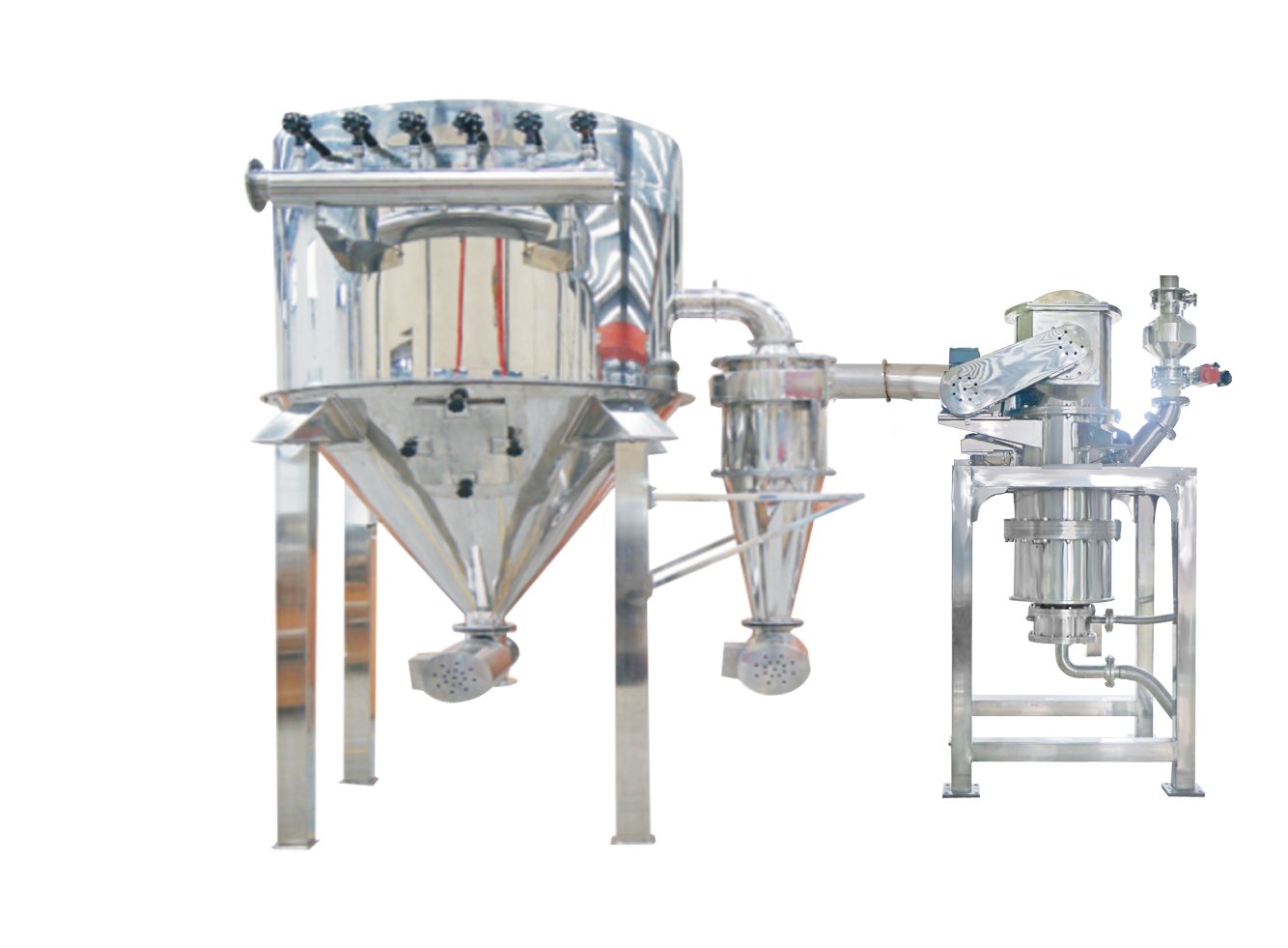 在沖突式氣流粉碎結束后,機內粉碎區無域殘留死角,可全部粉碎成最終成品。